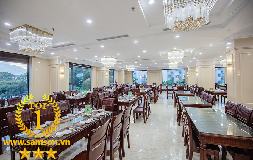 Nhà hàng của Khách sạn Marron Sầm Sơn là một trong những điểm nhấn đặc biệt. Mang đến cho du khách không chỉ không gian sang trọng mà còn trải nghiệm ẩm thực phong phú và đa dạng. Với tầm nhìn đẹp và phong cách phục vụ chuyên nghiệp. Nhà hàng là nơi lý tưởng để du khách thưởng thức các món ăn trong một khung cảnh ấm cúng, tinh tế. Nhà hàng nằm tại tầng 1 và tầng 2 của Khách sạn với sức chứa lên tới 400 người.
